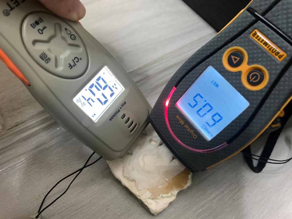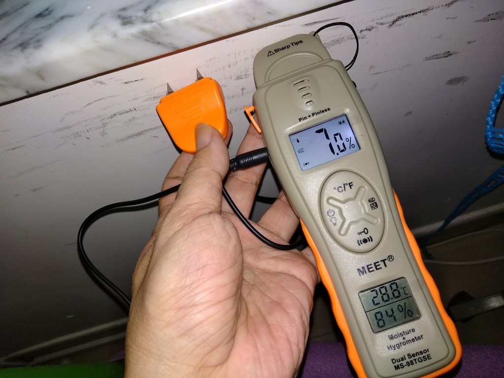 1. 為什麼量度漏水要選木材呢? 因為食環署那支GE濕度計是專量度木材而設, 而量度數字20/35/80WME是反映輕微/明顯/嚴重滲水, 所以用其他牌子濕度計時, 都要選擇木材選項, 兩支數字便很接近, 容易作出比較。