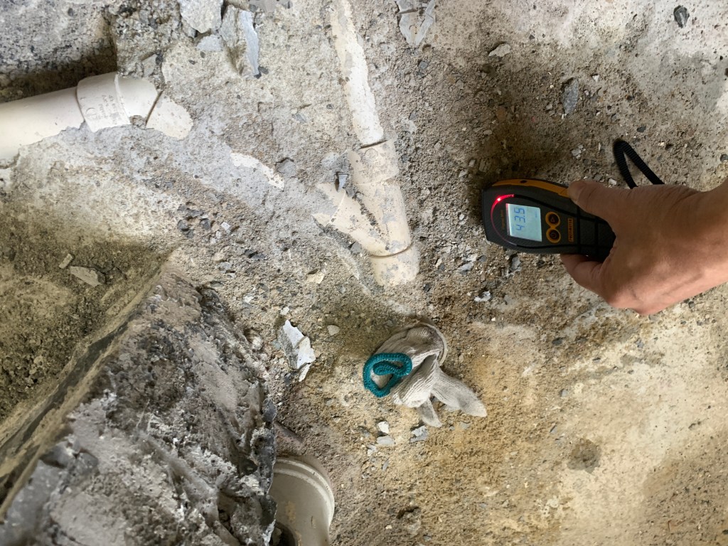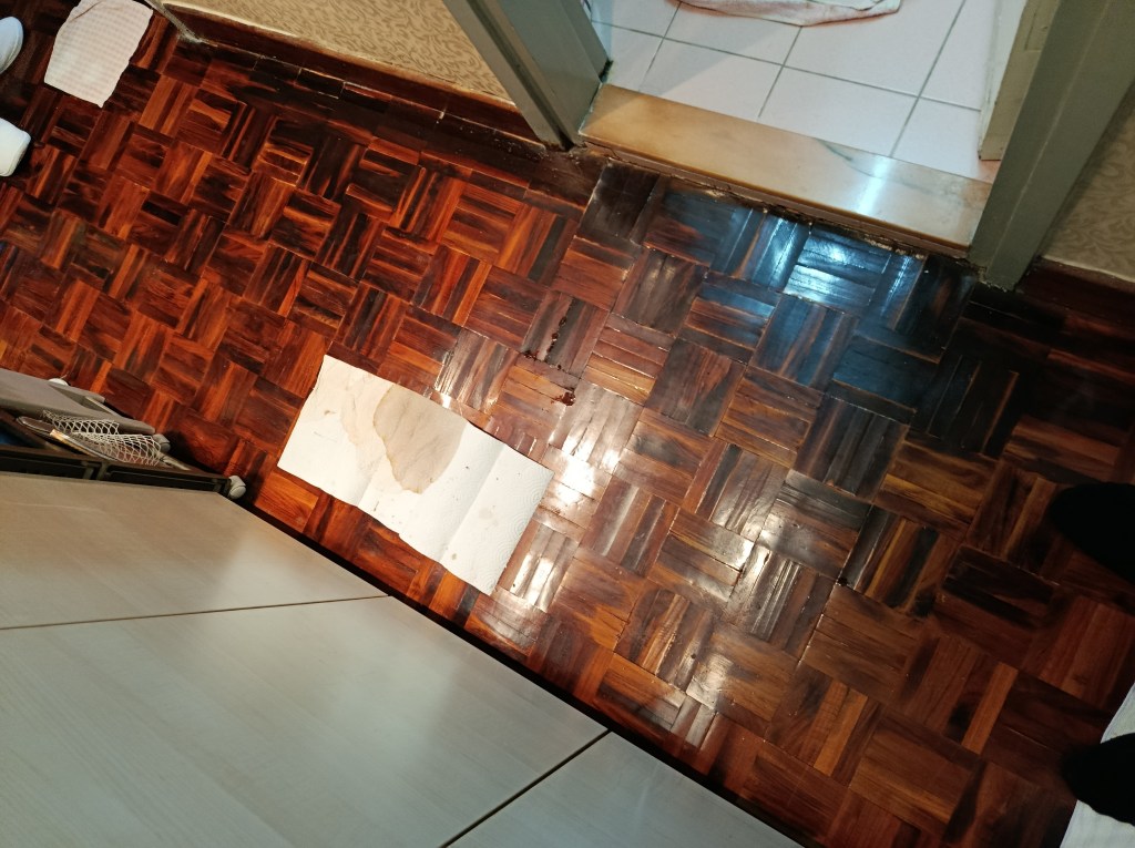 個案(1)- 藍田居屋走廊地板自己滲水5年,2小時檢測找到企缸去水渠滲漏,建議重造企缸及其渠管,工期4天