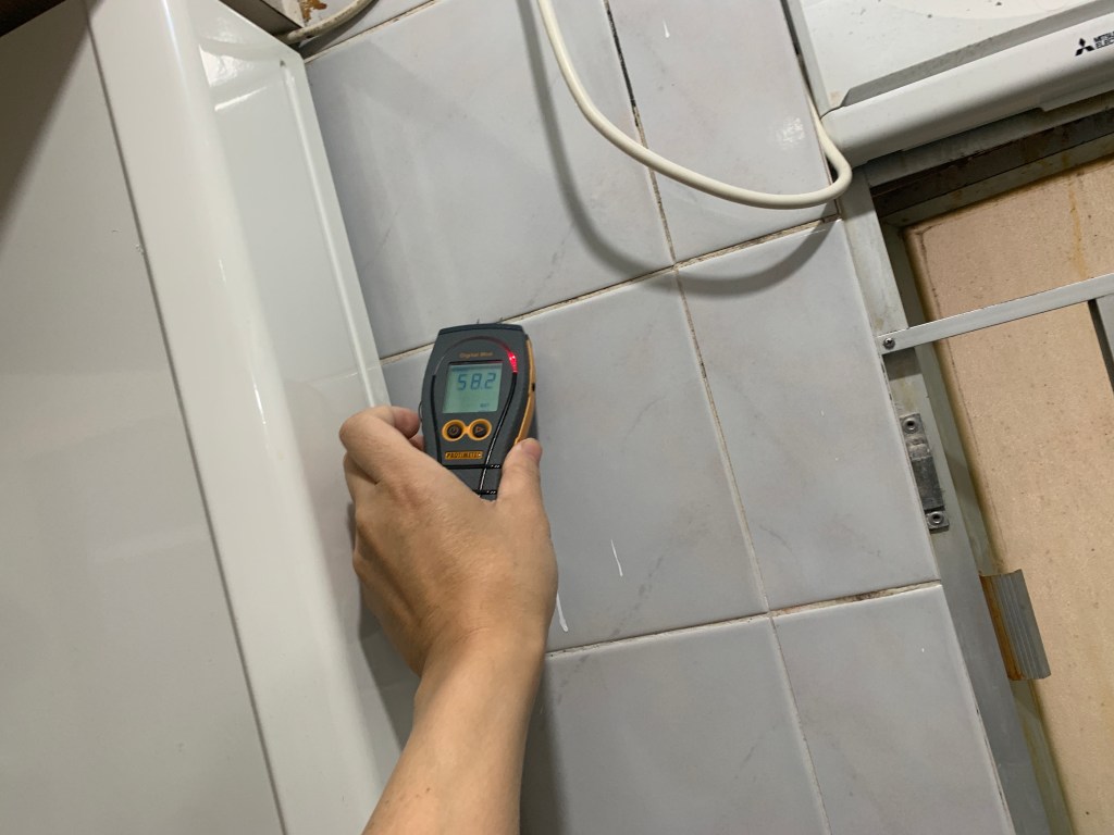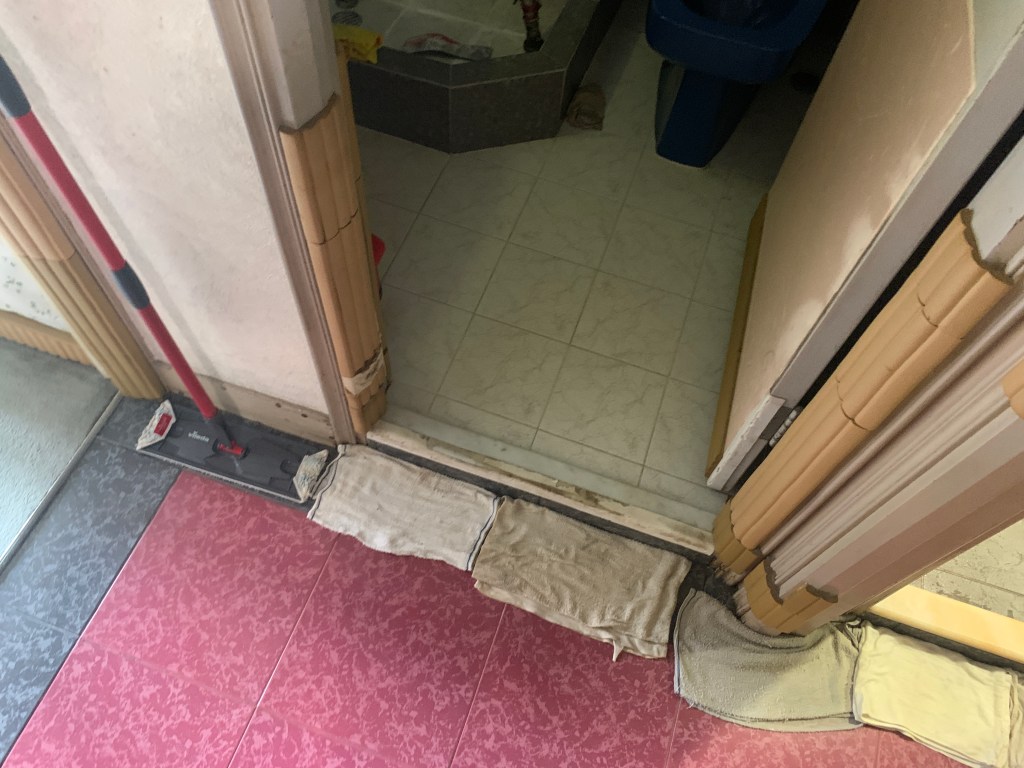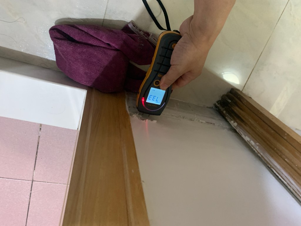 個案(4)- 鴨脷洲上下層滲水1年,下層業主突然邀請上層業主到單位視察,要求上層業主負責支付專家檢測2萬4及維修費用,上層業主要求先檢查先,但下層拒絕俾其師傅/專家入層,2小時上層單位檢測找到地台去水渠滲漏,建議半爆,工期21天。先鑿開地台及半牆壁,找出地台滲水位置,再蒸乾地台2天(<20度),重造過牆地漏,批盪,防水泥2層,鋪瓦及潔具