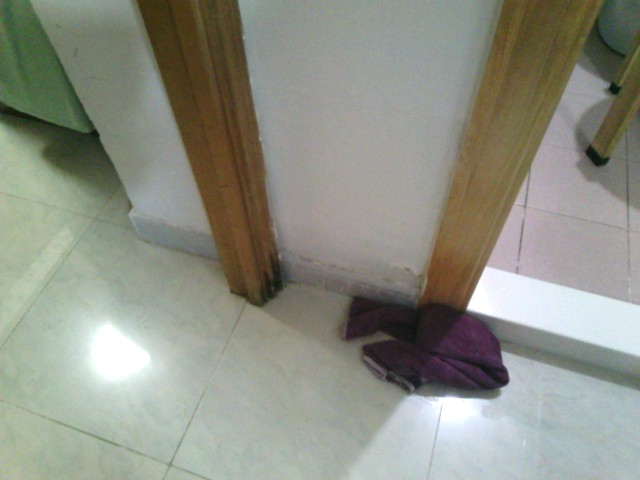 個案(7)- 廣明苑浴室門口地板滲水,業主以為水管漏水,找人更換明喉, 但滲水繼續? 業主懷疑水喉漏水,改冷熱水明喉(廚房至浴室)$20,000。完工,滲水不變,找專家,測試後,發現上層單位浴室過外牆冷水喉漏水。建議通知管理處跟進