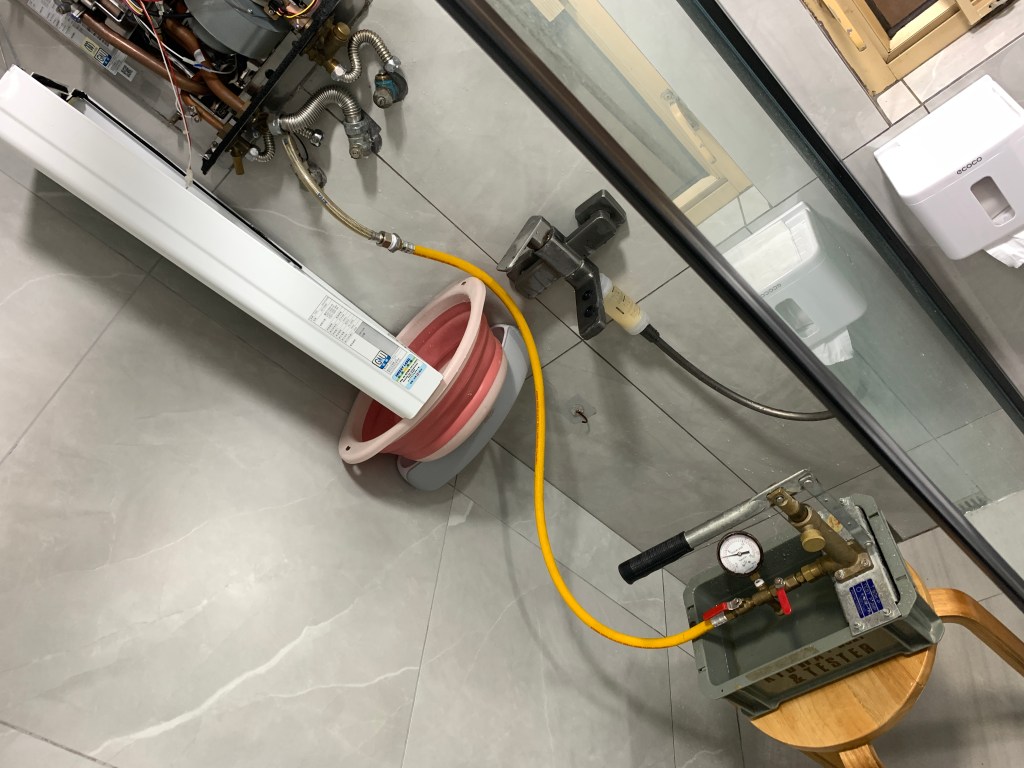 食水管現壓測試30分鐘 $2,200; 如冷/熱水管分開測試$2,800; (如熱水爐離地>1.8米, 另加1,000)